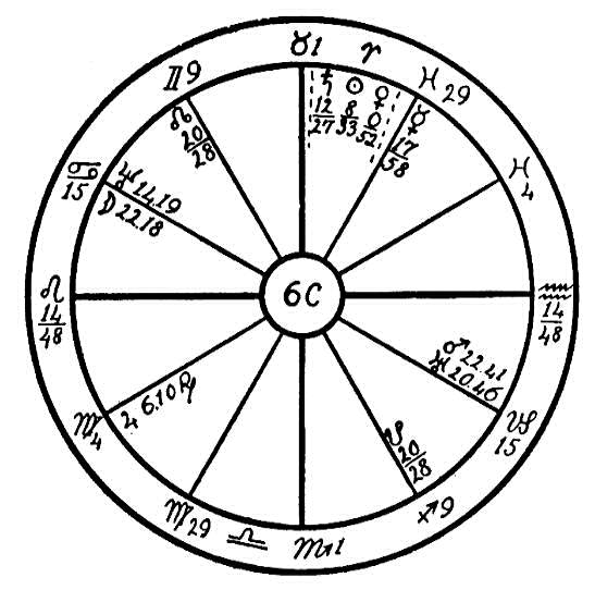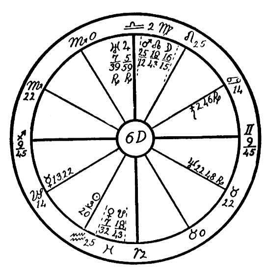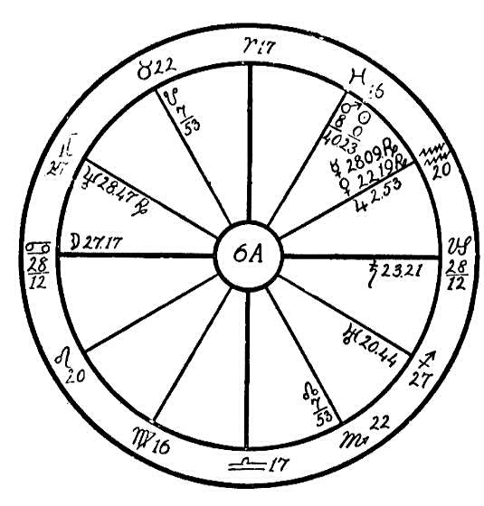 Nous nous servirons de deux thèmes au moyen desquels nous indiquerons les influences de Saturne dans le Capricorne produisant des effets de nature complètement différente. Nous utiliserons tout d'abord le thème 6 A, qui est celui d'un homme né le 19 février 1902, à 15 heures.