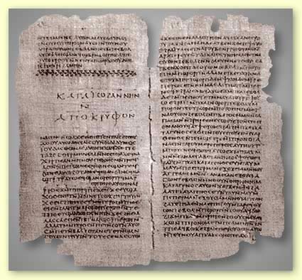 * Papyri d'Oxyrhynchus : c'est une collection de plusieurs milliers de fragments de papyrus découverts en 1897 et après à Oxyrhynchus, qui était au 4eme siècle un centre de culture chrétienne, à environ 19 km à l'ouest du Nil, près de la ville moderne de Behnesa. Les fragments les plus célèbres sont deux séries de « logia » de Jésus.