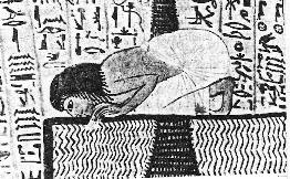 Il faut remarquer, sur notre exemple, que le personnage a les pieds non en extensions, mais repose sur les orteils; point bien connu en acupuncture et en yoga.
