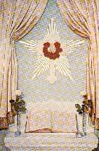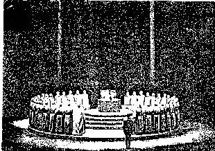 Shantidas : Le temple où douze Frères, longues silhouettes blanches en cercle presque fermé, attendent le treizième; le voici enfin, Présence perceptible, mais non visible, qui achève le cercle, et fait de celui-ci un centre rayonnant d'amour, d'invocations et de prières; des sons et de couleurs magnifique sont perçues, puis un seul son, doux, continue est entendu. "relie toi à eux, que ta pensée, ton amour soient des fils de lumière, les rejoignant et en recevant , paix, force et joie." |
