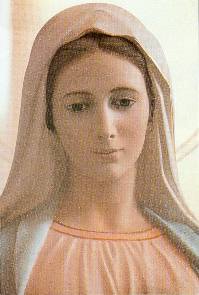 apparue comme la Reine de la Paix, tenant un rosaire. A
