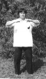 expirez lentement, en baissant les mains et les bras, paumes dirigées vers le bas; les jambes restent fléchies; recommencez plusieurs fois l'exercice. |