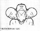 debout les jambes légèrement écartées; pencher la tête alternativement à droite, à gauche, en avant, en arrière, très lentement; le faire 4 à 5 fois; puis prendre une respiration complète et retenir le souffle et faire la série complète de l'exercice; recommencer plusieurs fois. exécuter très lentement l'exercice. |