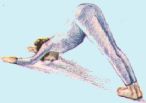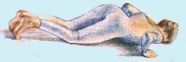 Nous avons représenté cet exercice debout pour mieux faire comprendre la position; mais il doit s'effectuer allongé sur le dos, les bras en croix; les bras sont au sol , les mains à plat et ne doivent pas bouger pendant l'exercice; les genoux se soulèvent vers la poitrine et nous effectuons une rotation à droite et à gauche du tronc, avec les genoux qui doivent toucher la terre; la respiration est normale. |