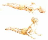 sol. Expirez. 2. Posez les mains à plat sous les épaules: inspirez et soulevez la poitrine par la force des muscles du dos uniquement et servez-vous alors de l'appui de vos bras pour vous redresser aussi loin que vous pouvez. Maintenez l'ombilic en contact avec le sol . 3. Relevez le menton et repoussez la tête en arrière comme si vous vouliez attirer l'énergie de l'épine dorsale dans la tête. 4. Respirez normalement. Conservez cette posture 30 secondes au minimum, puis remettez-vous à plat sur le sol, en expirant. Reposez-vous un instant. |
