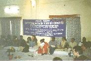 je me levais, rouge de confusion et je m'installais devant au premier rang; mais le gourou me dit de venir devant lui et de m'agenouillait, alors il prit un récipient et me versa sur la tête un peu d'eau en murmurant des phrases, puis il me versa de la poudre; je recevais son darsham; je ne savais plus où me "fourrer"; je n'étais pas encore remis que je fus mitraillait par les appareils photos des journalistes; un an plus tard lors d'une visite d'une amie qui était restée en Inde pendant un an, et de passage à Toulon, elle me dit que j'étais devenue une célébrité car ma photo était parue dans tous les journaux du coin; |