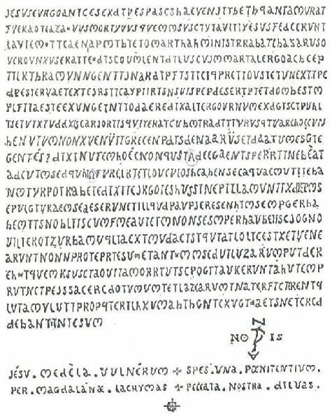 à moi-même... Christocentrisme oblige ! Le "Bon Berger", c'est notoirement le Christ, donc la "bergère" pourrait dès lors s'appliquer à "Christine" à qui l'information parait, selon ma métalogique, être destinée. Et comme pour étayer mes prétentions, j'offre au lecteur une autre de mes petites trouvailles. Rappelons-nous la première partie du message : "Bergère pas de tentation, que Poussin Teniers gardent la clef PAXDCLXXXI… par la CROIX..." On sait qu'au-dessus de la Croix figurait un message, que l'on représente généralement par quatre lettres: I