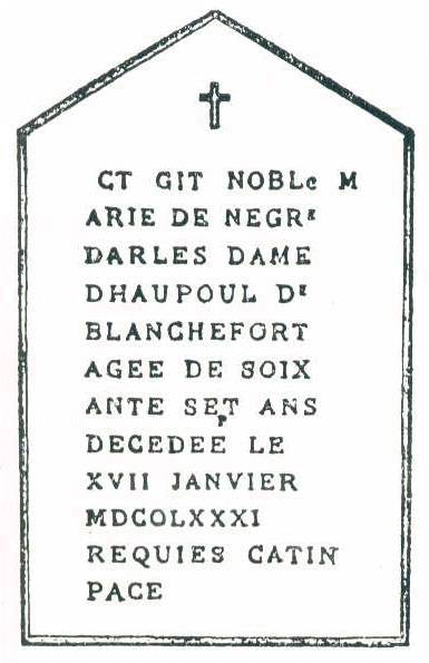 phrase qui se retrouvait sur un autre tombeau, celui de Marie de Blanchefort;